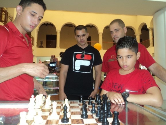 En compañía de sus padres y su entrenador, el pequeño Dionys Mario Rodríguez Martínez, de 10 años y quien competirá en la división Sub 12, llegó visiblemente entusiasmado y, como en cada calendario, aprovechó para aumentar su arsenal ajedrecístico con libros y revistas. El antillano se midió en una partida amistosa con el sudamericano Gigli y demostró estar en buena forma.